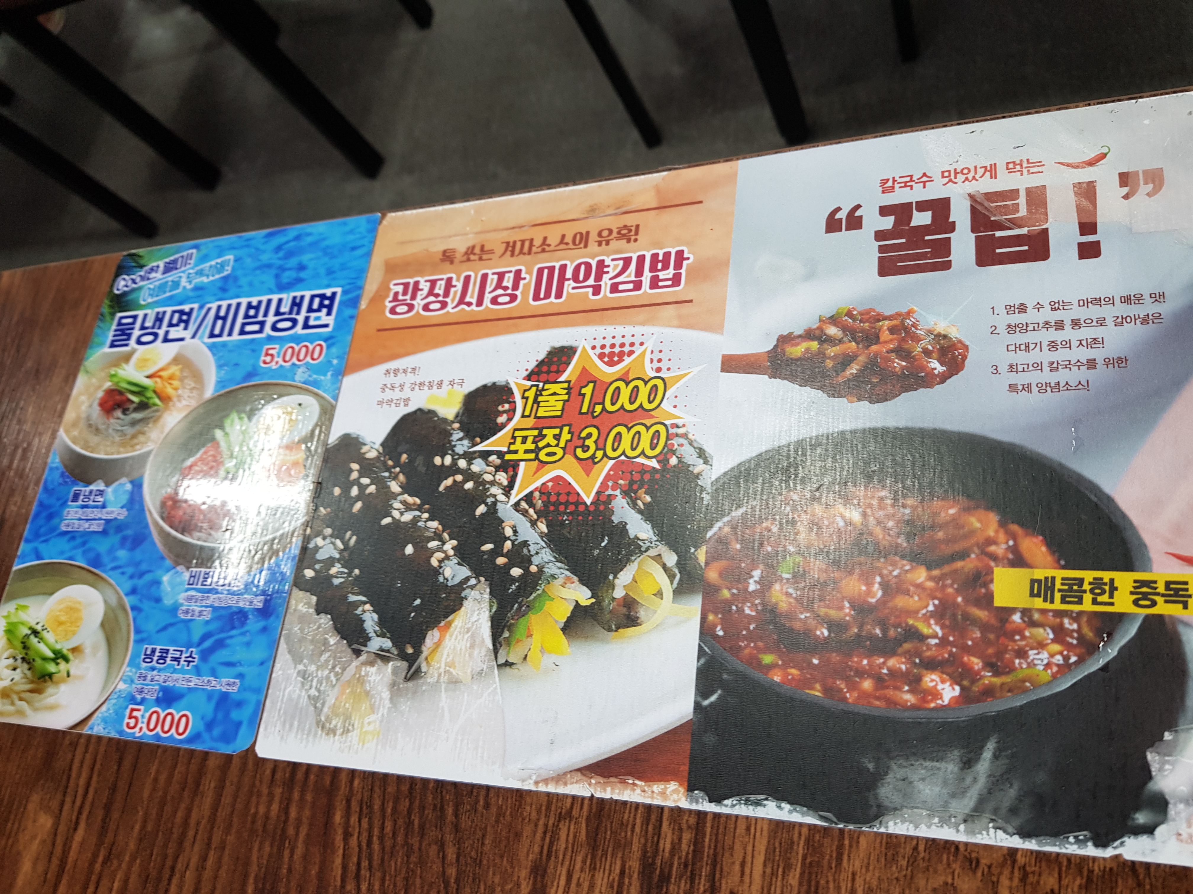 글케 맛있지 않더라도 기분은 안나쁠거같다.테이블에 붙어있던 메뉴다.