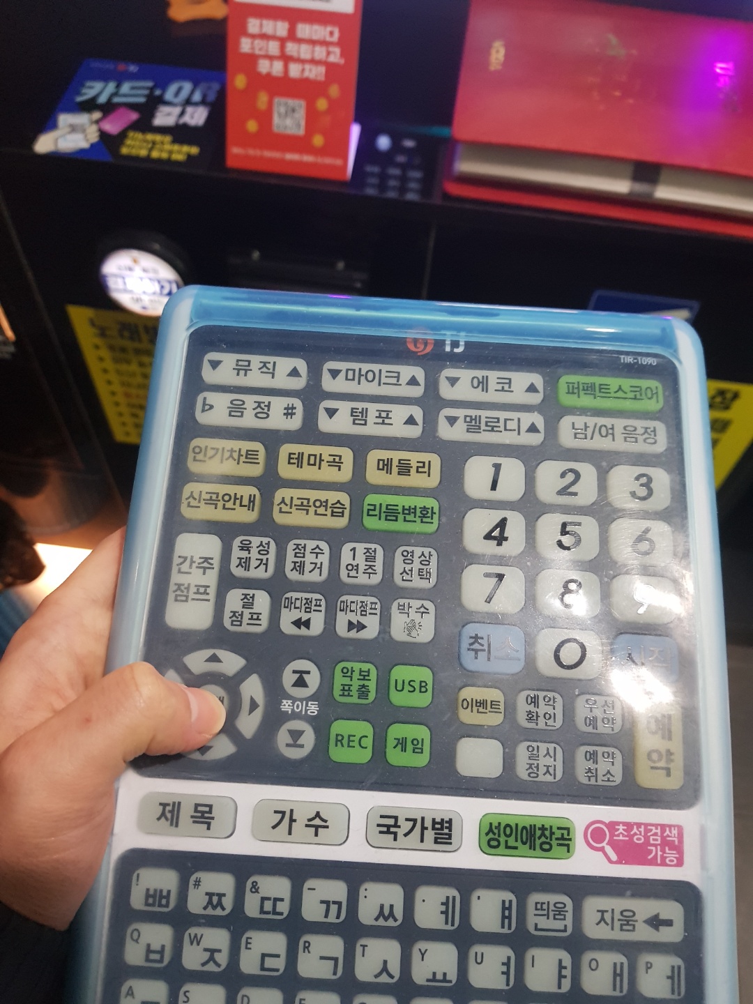 노래방 리모컨을 사용해서 원하는 곡수를 선택할 수 있다.