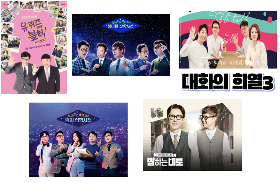 예능도 깨달음을 얻을 수 있는 것들을 주로 본다. 유퀴즈 온 더 블럭, 알쓸신잡, 알쓸범잡, 대화의 희열, 말하는 대로 등의 '토크멘터리' 프로그램을 보면 사람들이 어떤 철학을 가지고 살아가는지 구경해볼 수 있다.